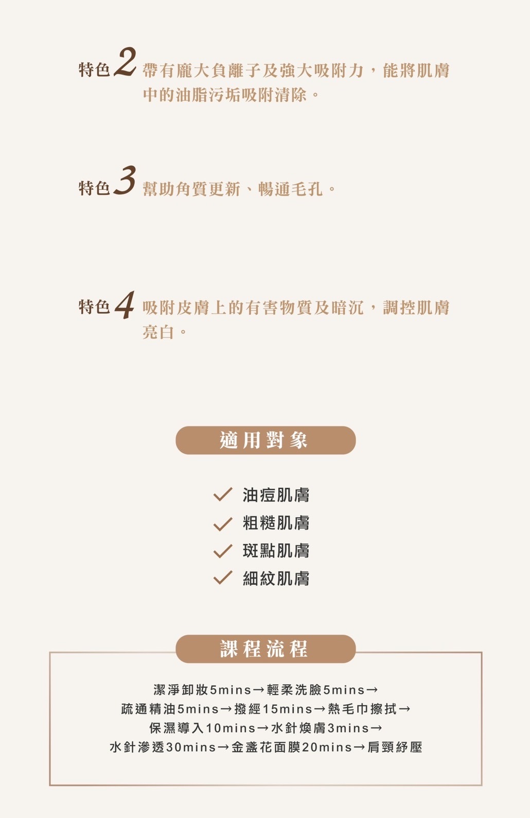 水針煥膚課程擁有四大特色,針對肌膚綜合問題能全面改善。